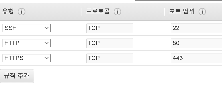 인스턴스시작 검토 화면이 나오면 아래 보안그룹 편집을 선택하고 HTTP, HTTPS 등 사용할 프로토콜을 추가한다.